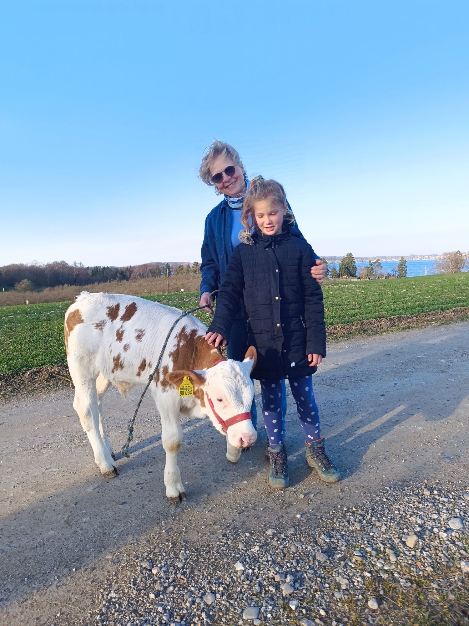 Bei strahlendem Sonnenschein konnte die Gewinnerin unseres Malwettbewerbs, Marie Erbshäuser, den Rundgang mit dem Kälbchen "Urban" genießen.