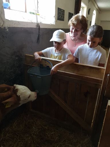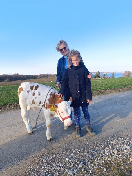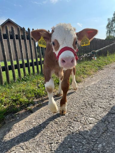 Einen Spaziergang mit einem Kälbchen vom Drexl-Hof in Schlagenhofen.