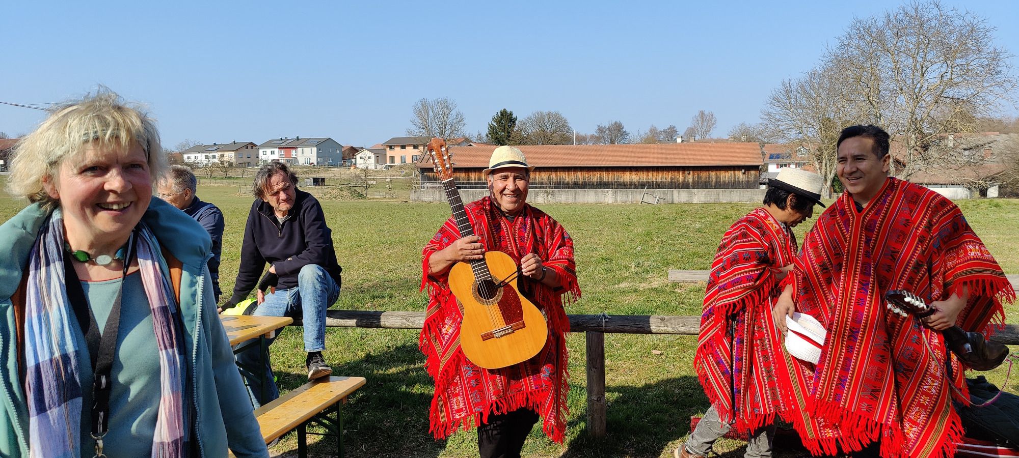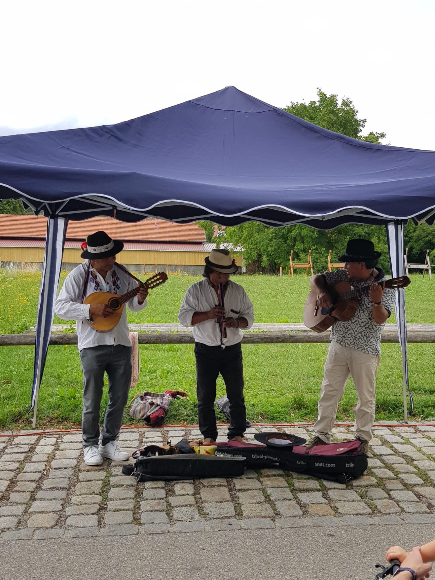 Der Hechendorfer Wochenmarkt bot heute Musik mit der Gruppe AMOR ANDINO und TIMM PÄCKERTS Steckerlfische.